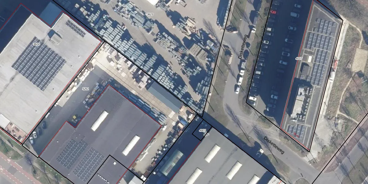 Het perceel waarop Disketteweg 62 staat heeft een oppervlakte van 8566 m². Dit is een zeer groot perceel. De perceeloppervlakte wordt geregistreerd door het Kadaster. Gedetailleerde informatie over de maten van dit perceel kunt u vinden in het rapport Kadastrale kaart met maatvoering van Disketteweg 62.