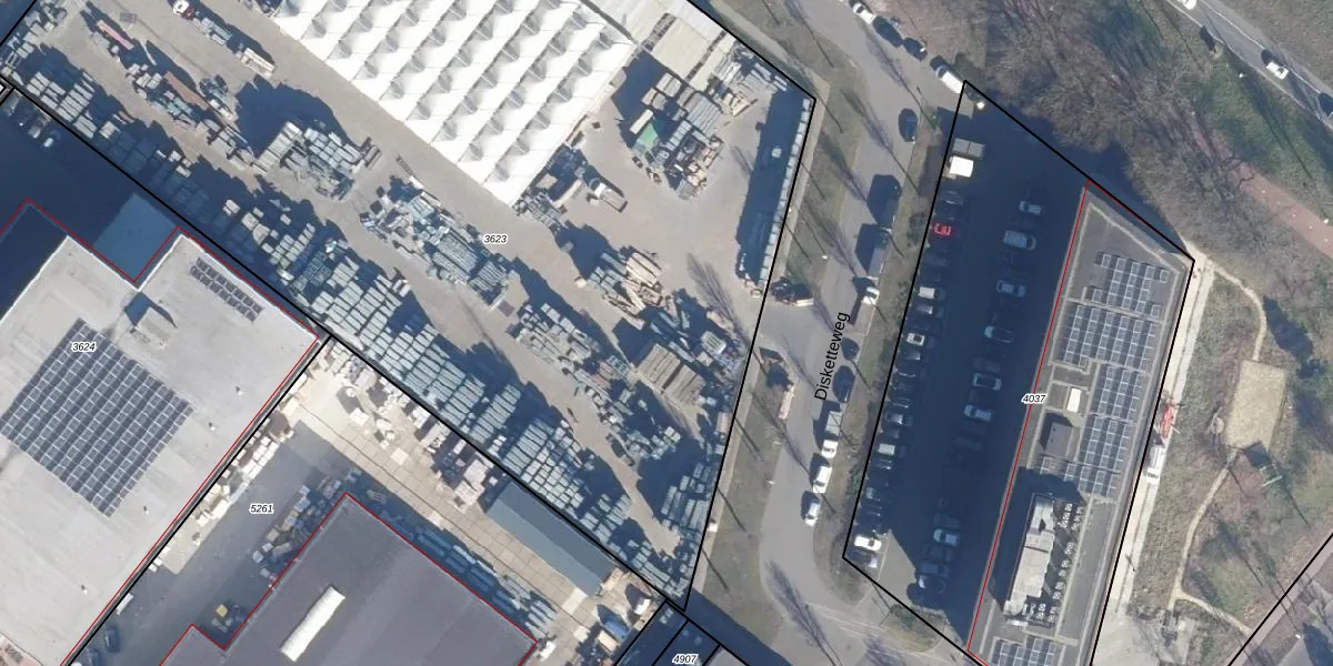 Het perceel waarop Disketteweg 68 staat heeft een oppervlakte van 8566 m². Dit is een zeer groot perceel. De perceeloppervlakte wordt geregistreerd door het Kadaster. Gedetailleerde informatie over de maten van dit perceel kunt u vinden in het rapport Kadastrale kaart met maatvoering van Disketteweg 68.
