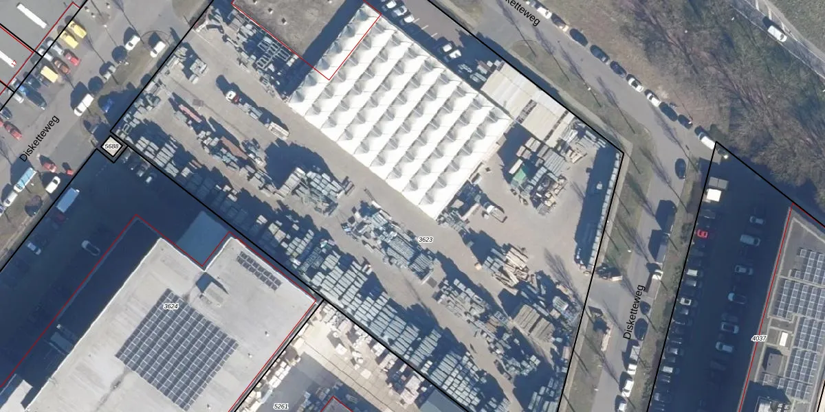 Het perceel waarop Disketteweg 80 staat heeft een oppervlakte van 8566 m². Dit is een zeer groot perceel. De perceeloppervlakte wordt geregistreerd door het Kadaster. Gedetailleerde informatie over de maten van dit perceel kunt u vinden in het rapport Kadastrale kaart met maatvoering van Disketteweg 80.