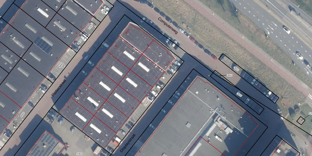 Het perceel waarop Displaystraat 17 staat heeft een oppervlakte van 3690 m². Dit is een zeer groot perceel. De perceeloppervlakte wordt geregistreerd door het Kadaster. Gedetailleerde informatie over de maten van dit perceel kunt u vinden in het rapport Kadastrale kaart met maatvoering van Displaystraat 17.