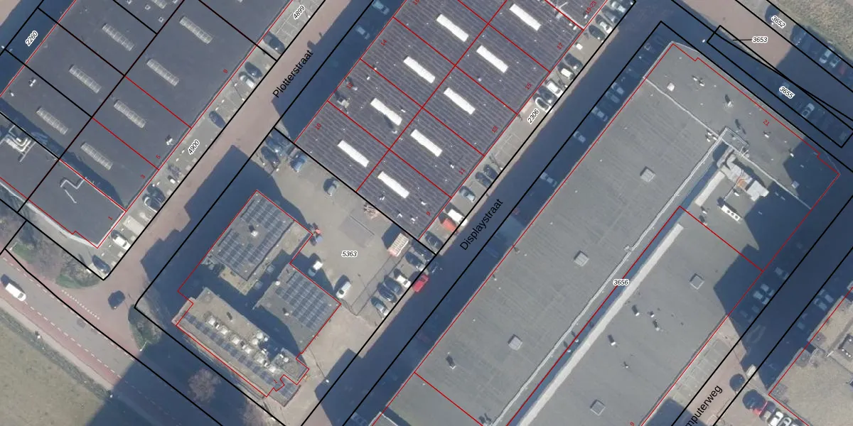 Het perceel waarop Displaystraat 9 staat heeft een oppervlakte van 3690 m². Dit is een zeer groot perceel. De perceeloppervlakte wordt geregistreerd door het Kadaster. Gedetailleerde informatie over de maten van dit perceel kunt u vinden in het rapport Kadastrale kaart met maatvoering van Displaystraat 9.