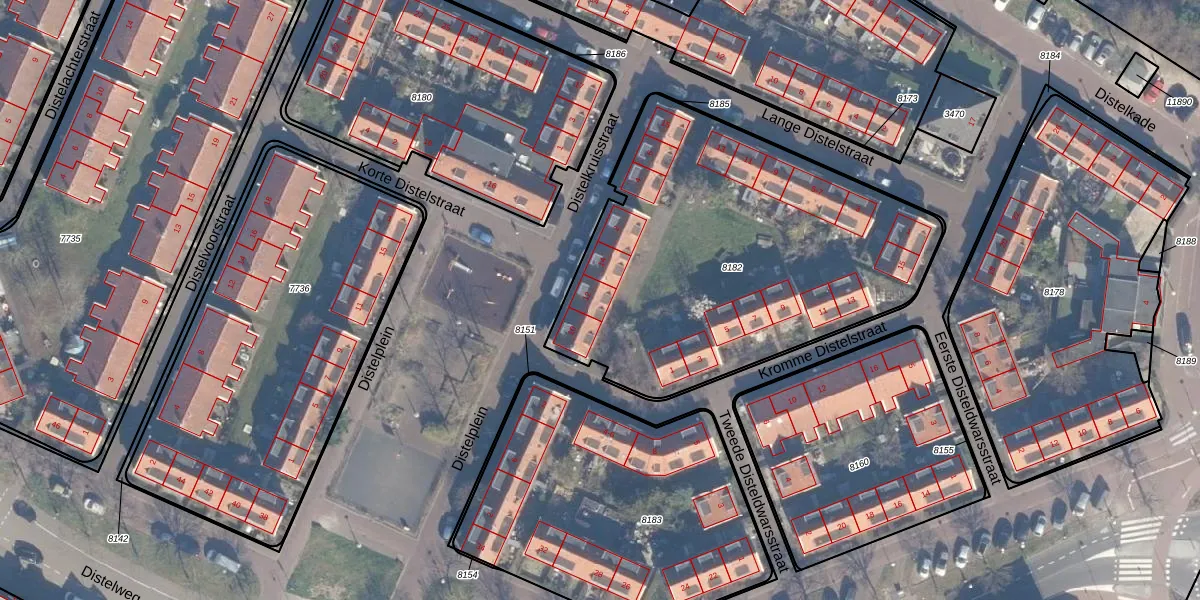 Distelplein 12 is gelegen op kadastraal perceel ASD07K8182. Deze kadastrale aanduiding is uniek en wordt gebruikt door het Kadaster om eigendomsrechten en andere zakelijke rechten vast te leggen. Het perceel maakt onderdeel uit van de kadastrale gemeente Amsterdam.