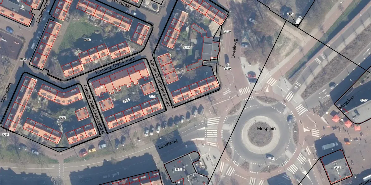 Distelweg 12 is gelegen op kadastraal perceel ASD07K8178. Deze kadastrale aanduiding is uniek en wordt gebruikt door het Kadaster om eigendomsrechten en andere zakelijke rechten vast te leggen. Het perceel maakt onderdeel uit van de kadastrale gemeente Amsterdam.