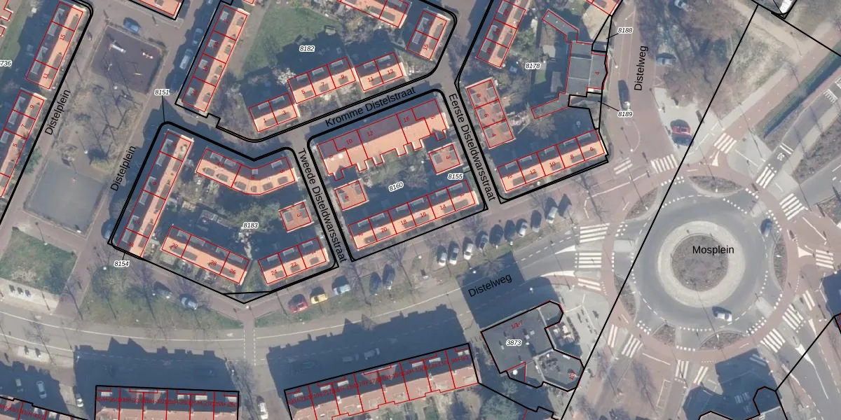Distelweg 16 is gelegen op kadastraal perceel ASD07K8160. Deze kadastrale aanduiding is uniek en wordt gebruikt door het Kadaster om eigendomsrechten en andere zakelijke rechten vast te leggen. Het perceel maakt onderdeel uit van de kadastrale gemeente Amsterdam.