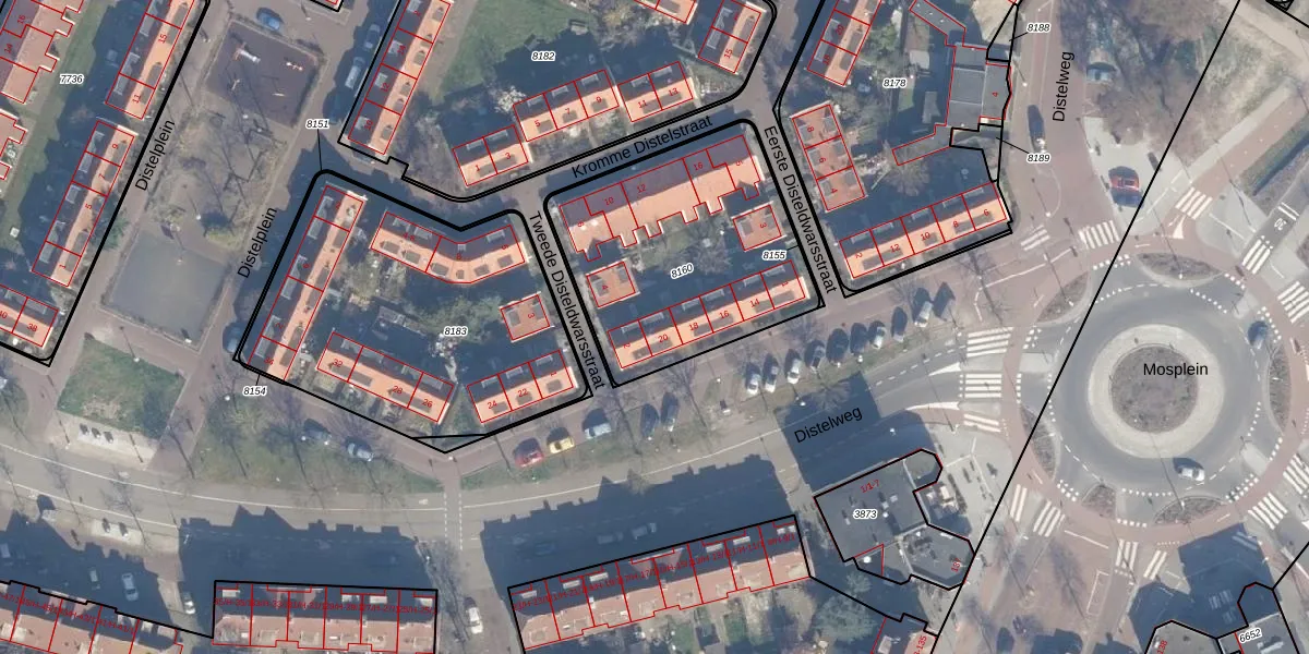 Distelweg 20 is gelegen op kadastraal perceel ASD07K8160. Deze kadastrale aanduiding is uniek en wordt gebruikt door het Kadaster om eigendomsrechten en andere zakelijke rechten vast te leggen. Het perceel maakt onderdeel uit van de kadastrale gemeente Amsterdam.
