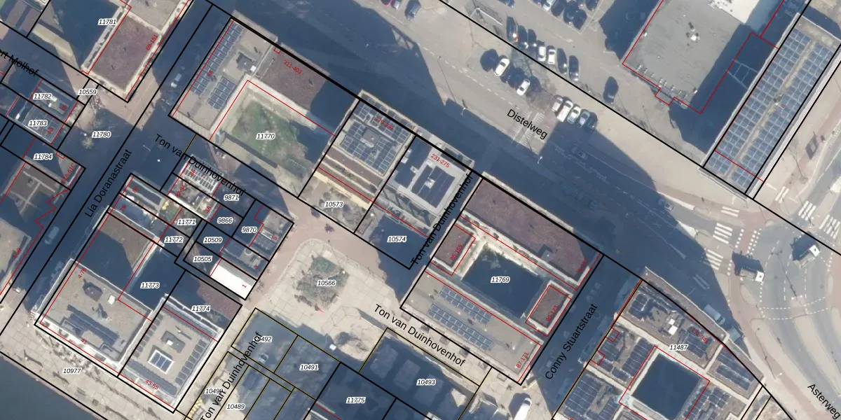 Distelweg 237 is gelegen op kadastraal perceel ASD07K10574. Deze kadastrale aanduiding is uniek en wordt gebruikt door het Kadaster om eigendomsrechten en andere zakelijke rechten vast te leggen. Het perceel maakt onderdeel uit van de kadastrale gemeente Amsterdam.