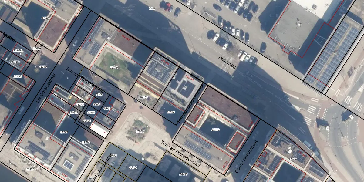 Distelweg 275 is gelegen op kadastraal perceel ASD07K10574. Deze kadastrale aanduiding is uniek en wordt gebruikt door het Kadaster om eigendomsrechten en andere zakelijke rechten vast te leggen. Het perceel maakt onderdeel uit van de kadastrale gemeente Amsterdam.
