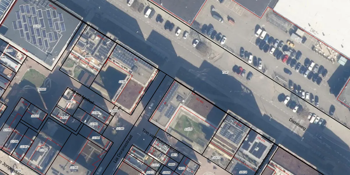Distelweg 321 is gelegen op kadastraal perceel ASD07K11770. Deze kadastrale aanduiding is uniek en wordt gebruikt door het Kadaster om eigendomsrechten en andere zakelijke rechten vast te leggen. Het perceel maakt onderdeel uit van de kadastrale gemeente Amsterdam.
