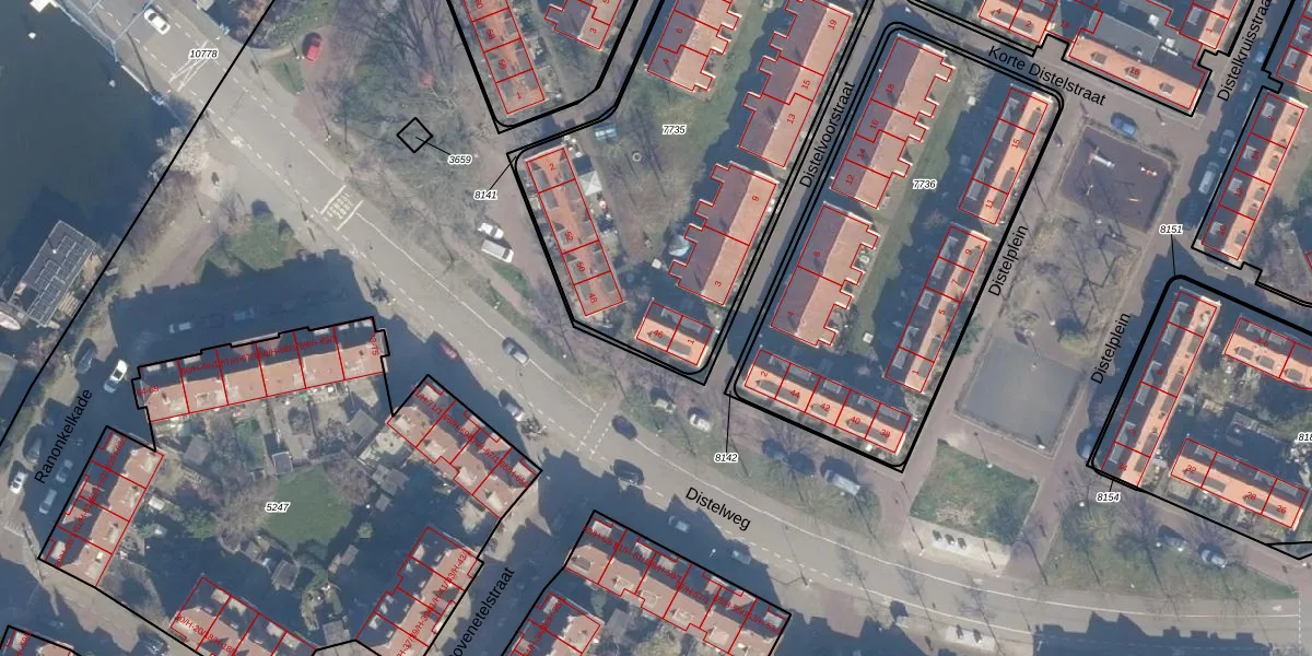 Distelweg 46 is gelegen op kadastraal perceel ASD07K7735. Deze kadastrale aanduiding is uniek en wordt gebruikt door het Kadaster om eigendomsrechten en andere zakelijke rechten vast te leggen. Het perceel maakt onderdeel uit van de kadastrale gemeente Amsterdam.