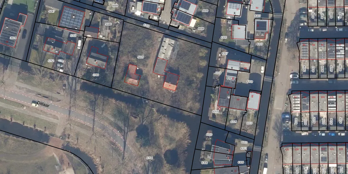 Het perceel waarop Ditlaar 4-A staat heeft een oppervlakte van 2100 m². Dit is een zeer groot perceel. De perceeloppervlakte wordt geregistreerd door het Kadaster. Gedetailleerde informatie over de maten van dit perceel kunt u vinden in het rapport Kadastrale kaart met maatvoering van Ditlaar 4-A.