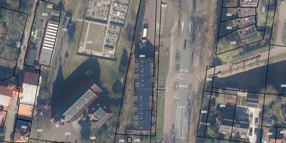 Het perceel waarop Ditlaar 51 staat heeft een oppervlakte van 1980 m². Dit is een zeer groot perceel. De perceeloppervlakte wordt geregistreerd door het Kadaster. Gedetailleerde informatie over de maten van dit perceel kunt u vinden in het rapport Kadastrale kaart met maatvoering van Ditlaar 51.