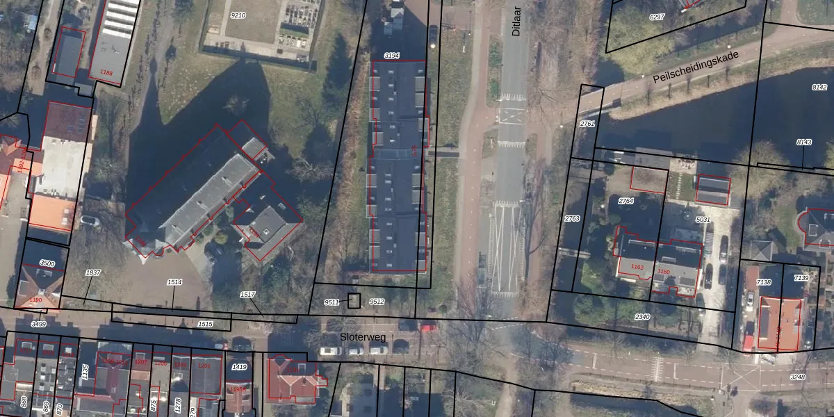 Het perceel waarop Ditlaar 61 staat heeft een oppervlakte van 1980 m². Dit is een zeer groot perceel. De perceeloppervlakte wordt geregistreerd door het Kadaster. Gedetailleerde informatie over de maten van dit perceel kunt u vinden in het rapport Kadastrale kaart met maatvoering van Ditlaar 61.