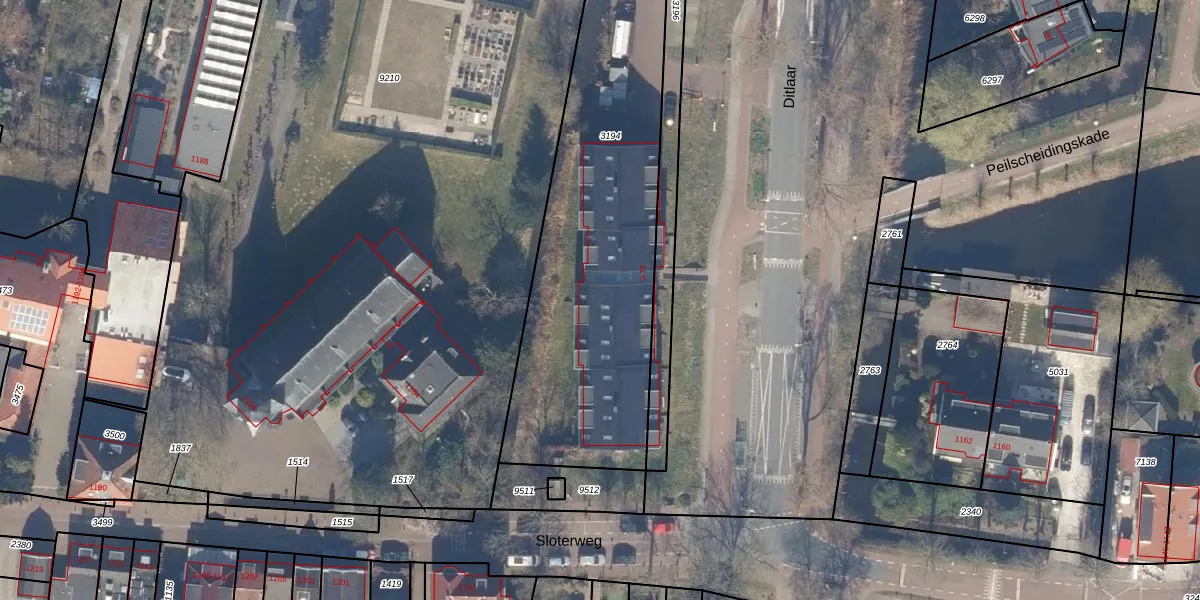 Het perceel waarop Ditlaar 73 staat heeft een oppervlakte van 1980 m². Dit is een zeer groot perceel. De perceeloppervlakte wordt geregistreerd door het Kadaster. Gedetailleerde informatie over de maten van dit perceel kunt u vinden in het rapport Kadastrale kaart met maatvoering van Ditlaar 73.