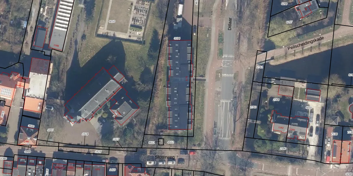 Het perceel waarop Ditlaar 75 staat heeft een oppervlakte van 1980 m². Dit is een zeer groot perceel. De perceeloppervlakte wordt geregistreerd door het Kadaster. Gedetailleerde informatie over de maten van dit perceel kunt u vinden in het rapport Kadastrale kaart met maatvoering van Ditlaar 75.