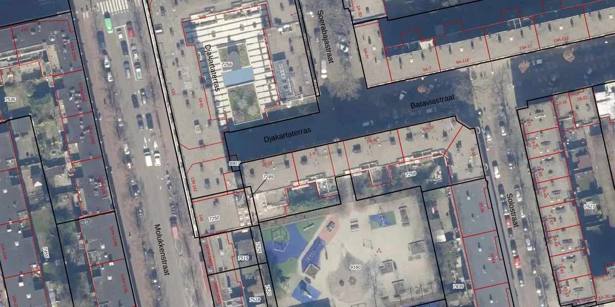 Het perceel waarop Djakartaterras 5 staat heeft een oppervlakte van 1498 m². Dit is een zeer groot perceel. De perceeloppervlakte wordt geregistreerd door het Kadaster. Gedetailleerde informatie over de maten van dit perceel kunt u vinden in het rapport Kadastrale kaart met maatvoering van Djakartaterras 5.