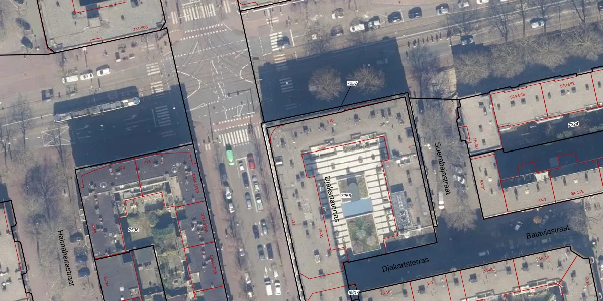 Djakartaterras 62 is gelegen op kadastraal perceel ASD19W7256. Deze kadastrale aanduiding is uniek en wordt gebruikt door het Kadaster om eigendomsrechten en andere zakelijke rechten vast te leggen. Het perceel maakt onderdeel uit van de kadastrale gemeente Amsterdam.