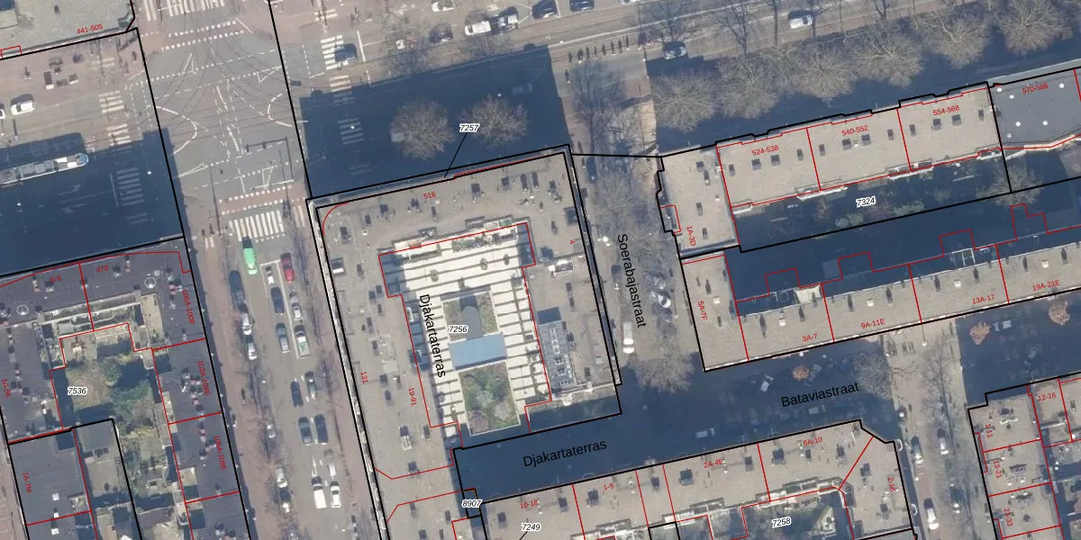 Het perceel waarop Djakartaterras 85 staat heeft een oppervlakte van 2622 m². Dit is een zeer groot perceel. De perceeloppervlakte wordt geregistreerd door het Kadaster. Gedetailleerde informatie over de maten van dit perceel kunt u vinden in het rapport Kadastrale kaart met maatvoering van Djakartaterras 85.