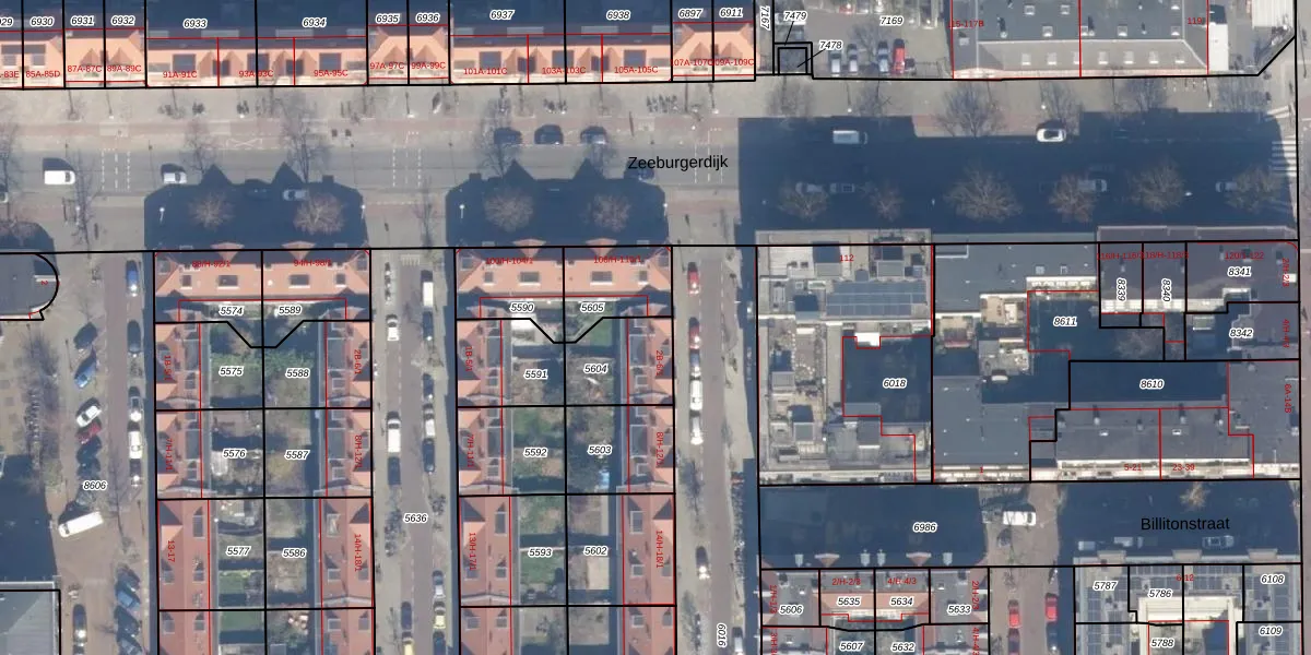 Het adres ligt op het perceel ASD15-S-5604, dat zich in de kadastrale gemeente Amsterdam bevindt. De gemiddelde perceelgrootte in Amsterdam is 537,06 m². Dit perceel is kleiner: de perceeloppervlakte bedraagt 210 m². De grootste perceeloppervlakte in de kadastrale gemeente is 14,5 ha. De kleinste oppervlakte bedraagt 0 m². Er zijn 5 adressen aanwezig op het perceel. De huidige grenzen van het perceel zijn digitaal in de Basisregistratie Kadaster (BRK) geregistreerd op 20-10-2006.
