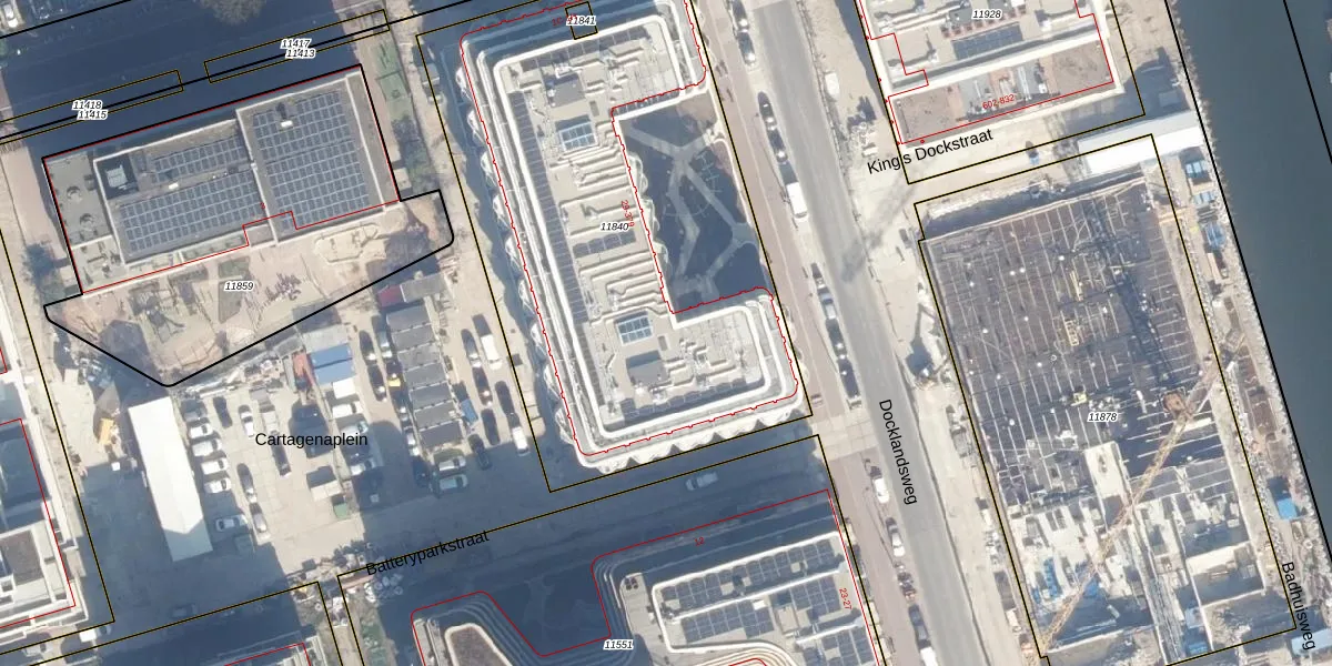 Het perceel waarop Docklandsweg 107 staat heeft een oppervlakte van 2910 m². Dit is een zeer groot perceel. De perceeloppervlakte wordt geregistreerd door het Kadaster. Gedetailleerde informatie over de maten van dit perceel kunt u vinden in het rapport Kadastrale kaart met maatvoering van Docklandsweg 107.