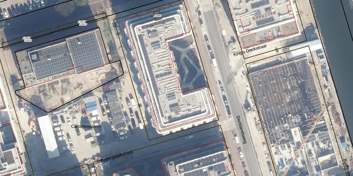 Het perceel waarop Docklandsweg 113 staat heeft een oppervlakte van 2910 m². Dit is een zeer groot perceel. De perceeloppervlakte wordt geregistreerd door het Kadaster. Gedetailleerde informatie over de maten van dit perceel kunt u vinden in het rapport Kadastrale kaart met maatvoering van Docklandsweg 113.