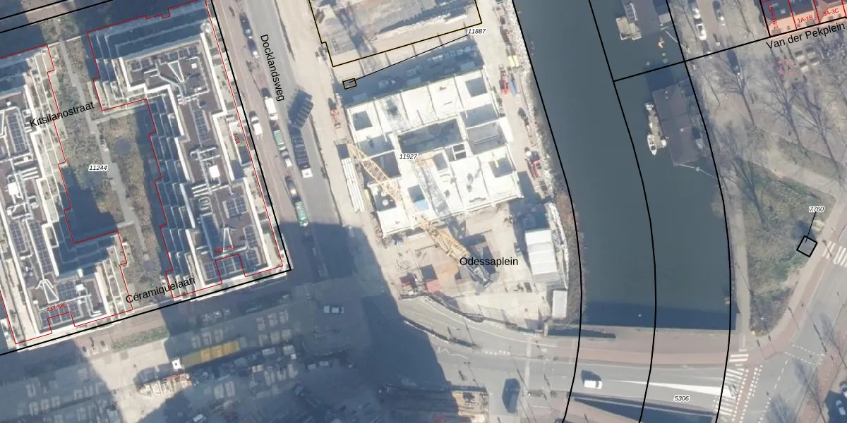 Het perceel waarop Docklandsweg 14 staat heeft een oppervlakte van 3,5 ha. Dit is een zeer groot perceel. De perceeloppervlakte wordt geregistreerd door het Kadaster. Gedetailleerde informatie over de maten van dit perceel kunt u vinden in het rapport Kadastrale kaart met maatvoering van Docklandsweg 14.