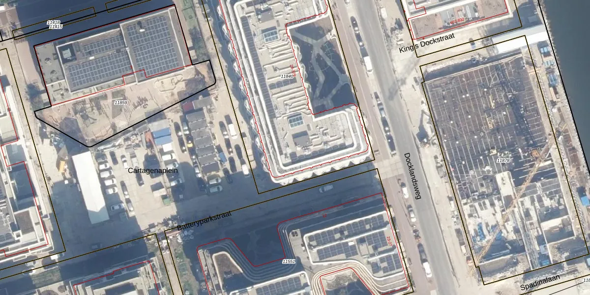 Het perceel waarop Docklandsweg 179 staat heeft een oppervlakte van 2910 m². Dit is een zeer groot perceel. De perceeloppervlakte wordt geregistreerd door het Kadaster. Gedetailleerde informatie over de maten van dit perceel kunt u vinden in het rapport Kadastrale kaart met maatvoering van Docklandsweg 179.