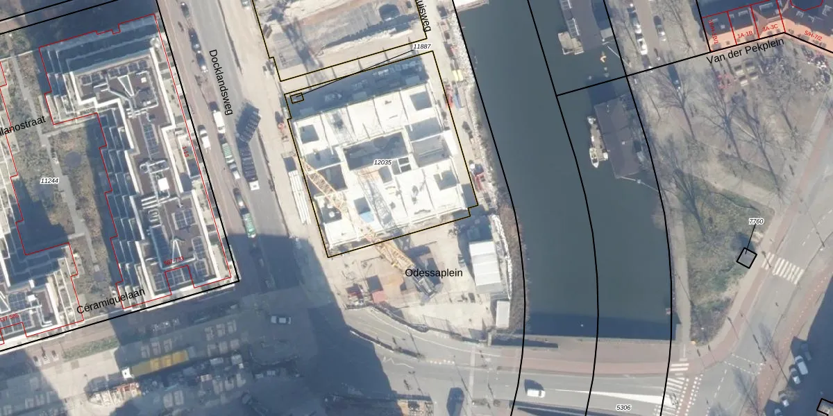 Het perceel waarop het adres ligt is ASD07-K-12035. De afkorting 'ASD07' staat voor kadastrale gemeente Amsterdam. Het perceel is kleiner dan gemiddeld in Amsterdam. Het perceel is 1531 m² groot, terwijl het gemiddelde ligt op 3005,21 m². Het grootste perceel in de kadastrale gemeente is 56,2 ha. Het kleinste perceel heeft een oppervlakte van 0 m². Er zijn 108 adressen aanwezig op het perceel. De laatste wijziging in het de Basisregistratie Kadaster (BRK) was op 25-03-2026.