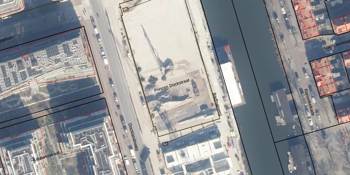 Het perceel waarop Docklandsweg 256-C staat heeft een oppervlakte van 2954 m². Dit is een zeer groot perceel. De perceeloppervlakte wordt geregistreerd door het Kadaster. Gedetailleerde informatie over de maten van dit perceel kunt u vinden in het rapport Kadastrale kaart met maatvoering van Docklandsweg 256-C.