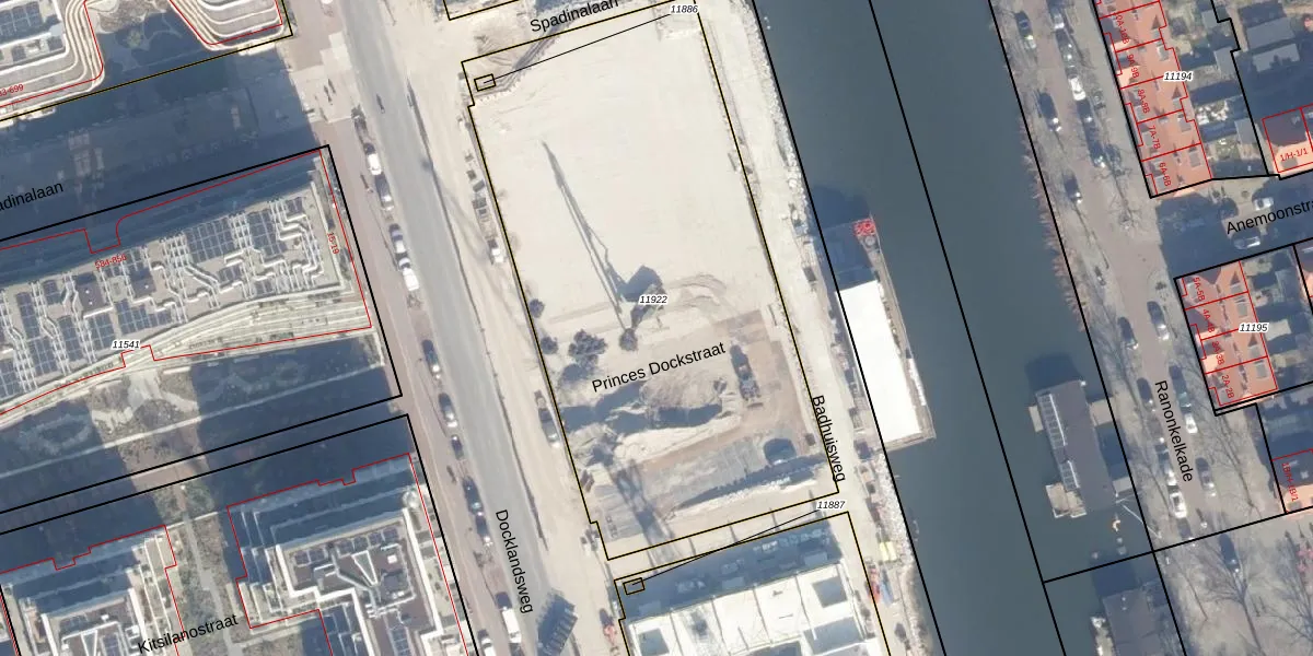 Het perceel waarop Docklandsweg 258-R staat heeft een oppervlakte van 2954 m². Dit is een zeer groot perceel. De perceeloppervlakte wordt geregistreerd door het Kadaster. Gedetailleerde informatie over de maten van dit perceel kunt u vinden in het rapport Kadastrale kaart met maatvoering van Docklandsweg 258-R.