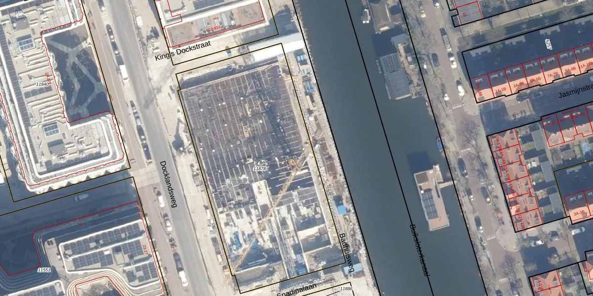 Het perceel waarop Docklandsweg 348 staat heeft een oppervlakte van 2928 m². Dit is een zeer groot perceel. De perceeloppervlakte wordt geregistreerd door het Kadaster. Gedetailleerde informatie over de maten van dit perceel kunt u vinden in het rapport Kadastrale kaart met maatvoering van Docklandsweg 348.