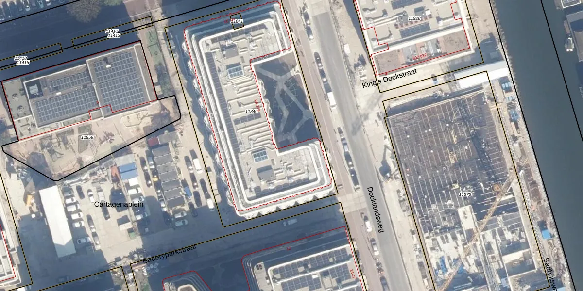 Het perceel waarop Docklandsweg 39 staat heeft een oppervlakte van 2910 m². Dit is een zeer groot perceel. De perceeloppervlakte wordt geregistreerd door het Kadaster. Gedetailleerde informatie over de maten van dit perceel kunt u vinden in het rapport Kadastrale kaart met maatvoering van Docklandsweg 39.
