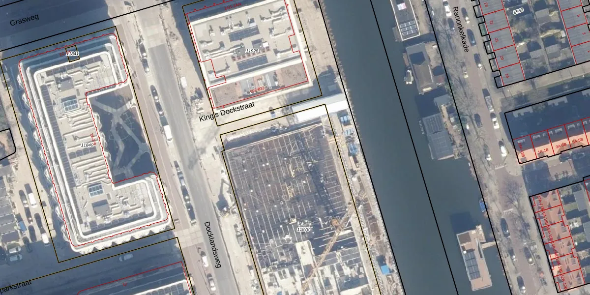 Het perceel waarop Docklandsweg 520 staat heeft een oppervlakte van 2928 m². Dit is een zeer groot perceel. De perceeloppervlakte wordt geregistreerd door het Kadaster. Gedetailleerde informatie over de maten van dit perceel kunt u vinden in het rapport Kadastrale kaart met maatvoering van Docklandsweg 520.