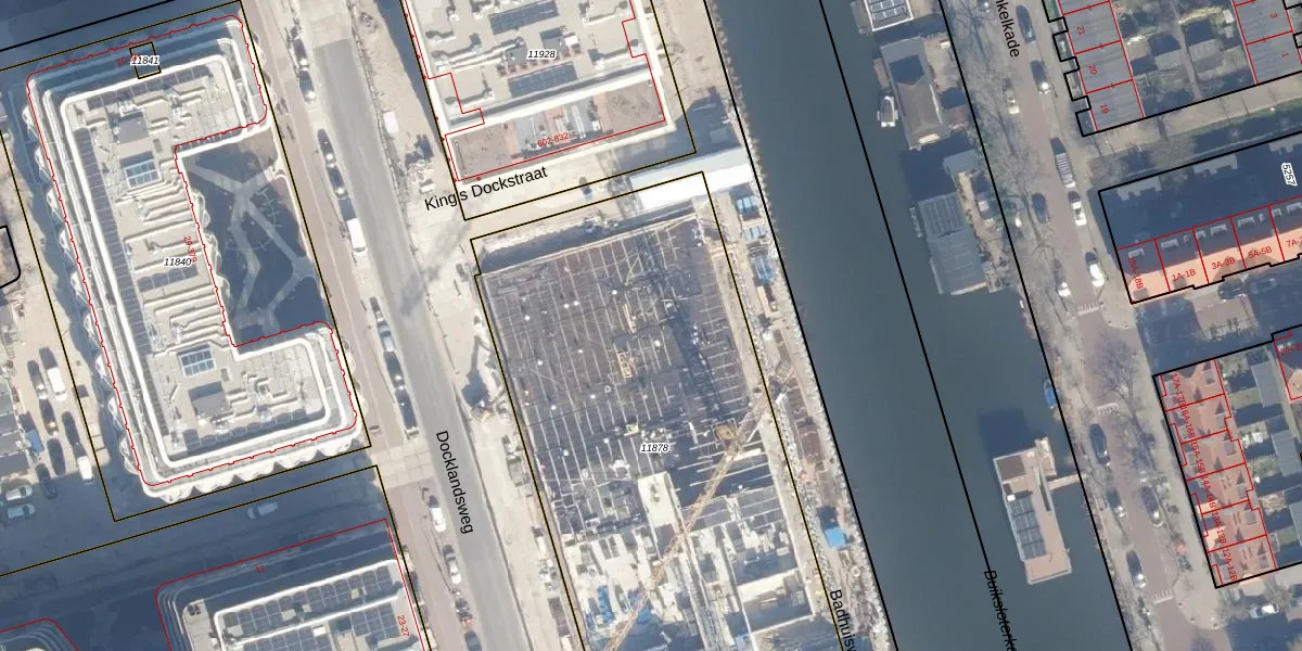 Het perceel waarop Docklandsweg 556 staat heeft een oppervlakte van 2928 m². Dit is een zeer groot perceel. De perceeloppervlakte wordt geregistreerd door het Kadaster. Gedetailleerde informatie over de maten van dit perceel kunt u vinden in het rapport Kadastrale kaart met maatvoering van Docklandsweg 556.