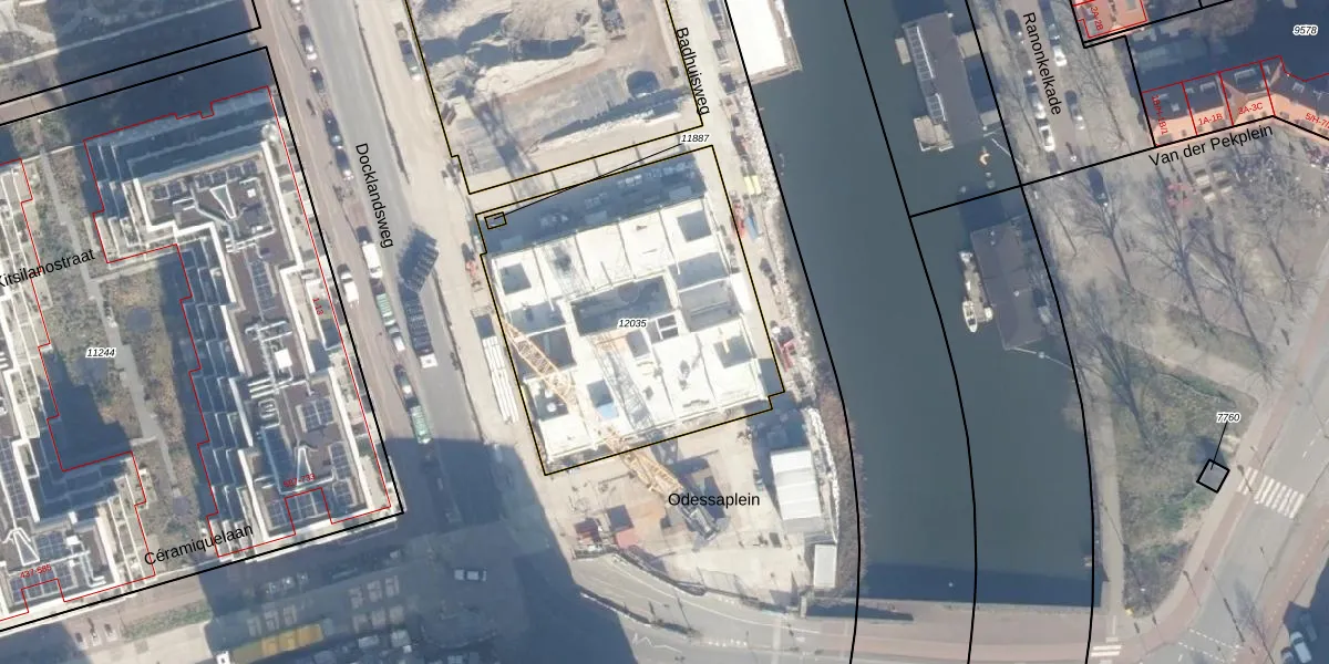 Het perceel waarop het adres ligt is ASD07-K-12035. De afkorting 'ASD07' staat voor kadastrale gemeente Amsterdam. Het perceel is kleiner dan gemiddeld in Amsterdam. Het perceel is 1531 m² groot, terwijl het gemiddelde ligt op 3005,21 m². Het grootste perceel in de kadastrale gemeente is 56,2 ha. Het kleinste perceel heeft een oppervlakte van 0 m². Op het perceel liggen in totaal 108 adressen. In de Basisregistratie Kadaster (BRK) werden de grenzen van het perceel geregistreerd op 25-03-2026.