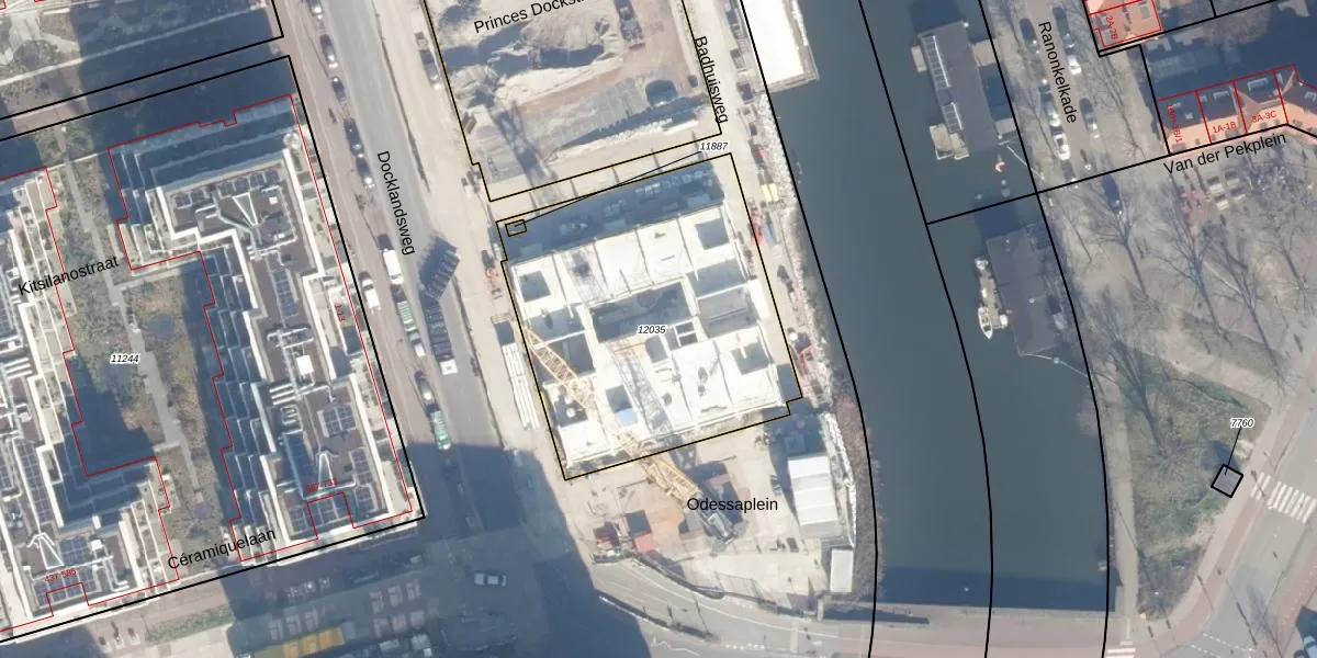 Het perceel waarop Docklandsweg 96 staat heeft een oppervlakte van 1531 m². Dit is een zeer groot perceel. De perceeloppervlakte wordt geregistreerd door het Kadaster. Gedetailleerde informatie over de maten van dit perceel kunt u vinden in het rapport Kadastrale kaart met maatvoering van Docklandsweg 96.