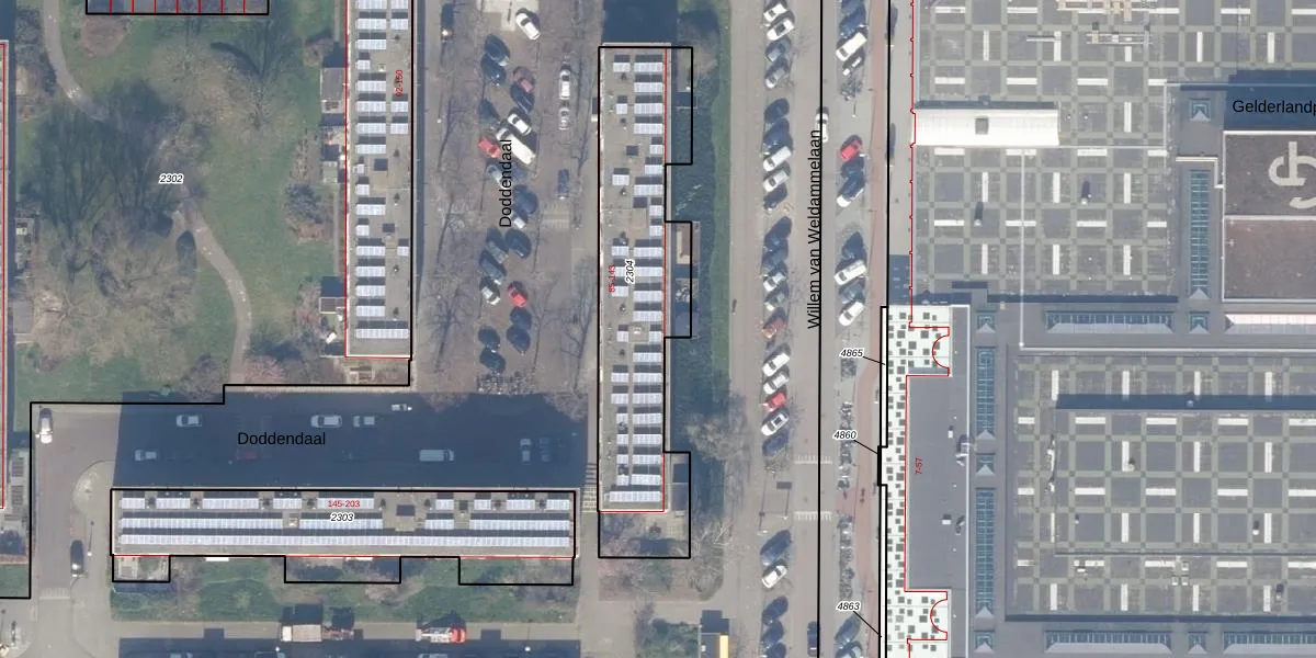 Het perceel waarop Doddendaal 121 staat heeft een oppervlakte van 976 m². Dit is een groot perceel. De perceeloppervlakte wordt geregistreerd door het Kadaster. Gedetailleerde informatie over de maten van dit perceel kunt u vinden in het rapport Kadastrale kaart met maatvoering van Doddendaal 121.
