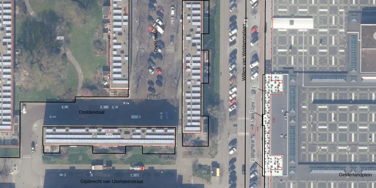 Het perceel waarop Doddendaal 123 staat heeft een oppervlakte van 976 m². Dit is een groot perceel. De perceeloppervlakte wordt geregistreerd door het Kadaster. Gedetailleerde informatie over de maten van dit perceel kunt u vinden in het rapport Kadastrale kaart met maatvoering van Doddendaal 123.