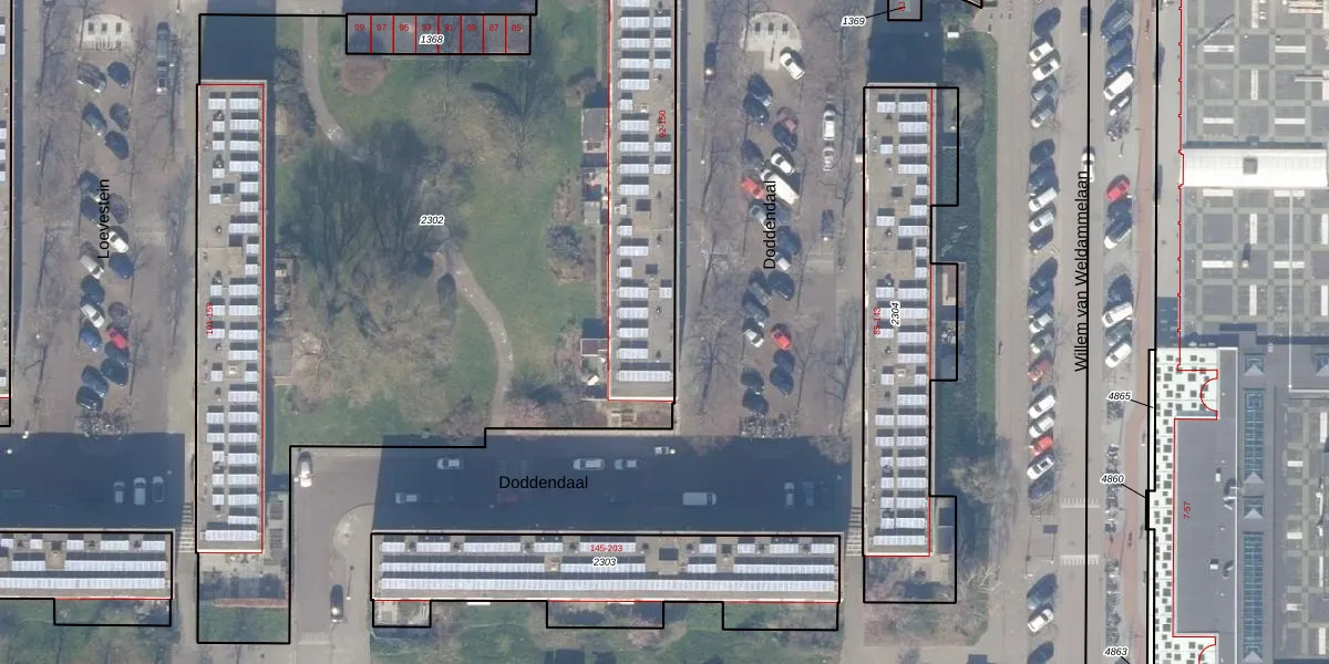 Het perceel waarop Doddendaal 142 staat heeft een oppervlakte van 5152 m². Dit is een zeer groot perceel. De perceeloppervlakte wordt geregistreerd door het Kadaster. Gedetailleerde informatie over de maten van dit perceel kunt u vinden in het rapport Kadastrale kaart met maatvoering van Doddendaal 142.
