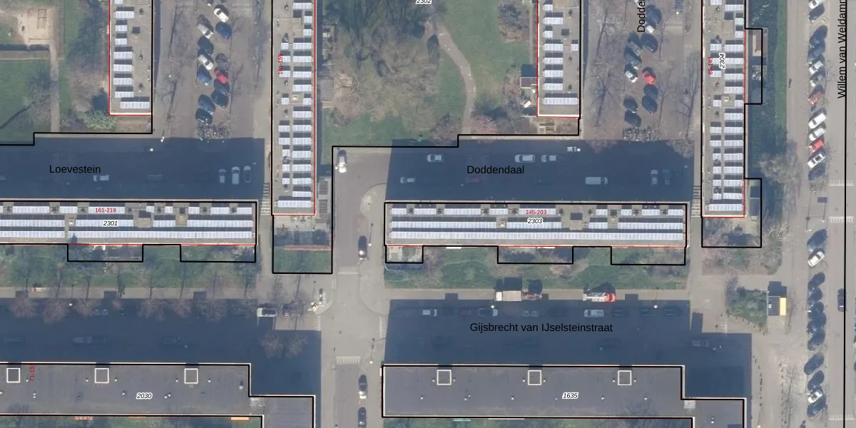 Doddendaal 191 is gelegen op kadastraal perceel ASD30AK2303. Deze kadastrale aanduiding is uniek en wordt gebruikt door het Kadaster om eigendomsrechten en andere zakelijke rechten vast te leggen. Het perceel maakt onderdeel uit van de kadastrale gemeente Amsterdam.