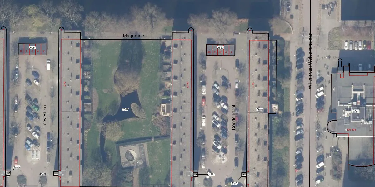 Het adres is gelegen op perceel 2087 in de sectie AK en de kadastrale gemeente Amsterdam. De kadastrale aanduiding is aldus ASD30-AK-2087. De oppervlakte van het perceel is 5866 m². Dat is groter dan gemiddeld in Amsterdam, waar de gemiddelde perceeloppervlakte op 1333,88 m² ligt. De grootste perceeloppervlakte in de kadastrale gemeente is 22,2 ha. De kleinste oppervlakte bedraagt 0 m². Er zijn 80 adressen aanwezig op het perceel. De laatste wijziging in het de Basisregistratie Kadaster (BRK) was op 16-05-2011.
