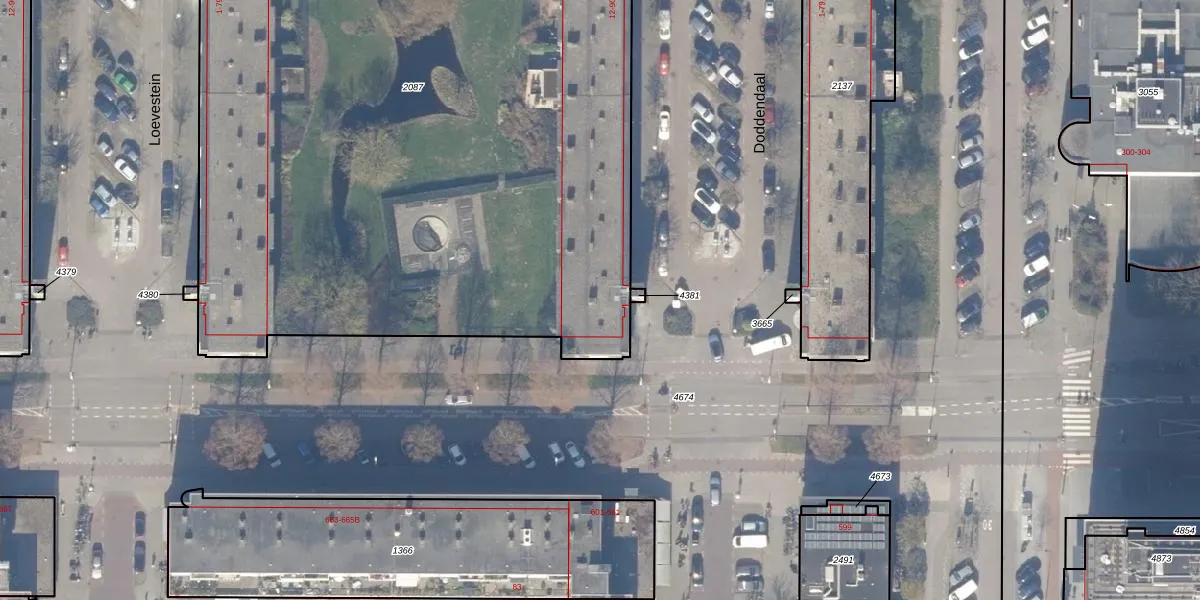 Het perceel waarop Doddendaal 50 staat heeft een oppervlakte van 5866 m². Dit is een zeer groot perceel. De perceeloppervlakte wordt geregistreerd door het Kadaster. Gedetailleerde informatie over de maten van dit perceel kunt u vinden in het rapport Kadastrale kaart met maatvoering van Doddendaal 50.
