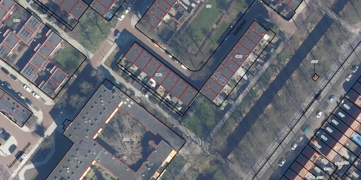 Dolfijnhof 6 is gelegen op kadastraal perceel ASD28AH3801. Deze kadastrale aanduiding is uniek en wordt gebruikt door het Kadaster om eigendomsrechten en andere zakelijke rechten vast te leggen. Het perceel maakt onderdeel uit van de kadastrale gemeente Amsterdam.