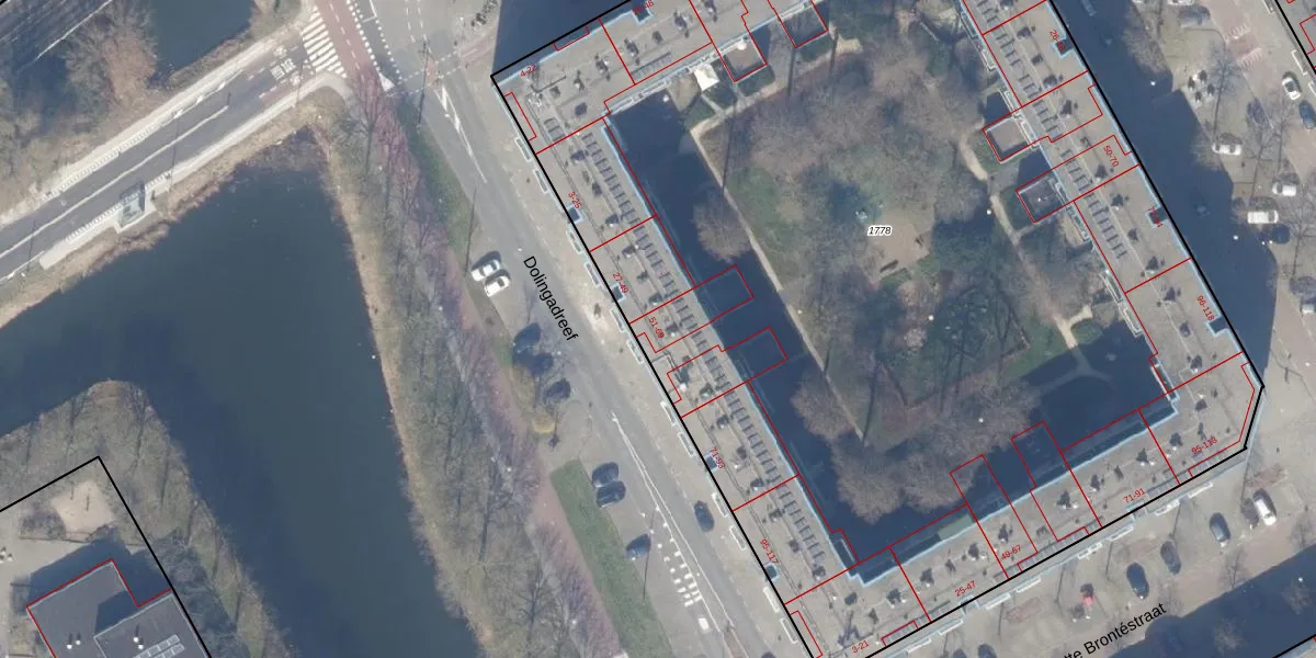 Het perceel waarop Dolingadreef 51 staat heeft een oppervlakte van 8370 m². Dit is een zeer groot perceel. De perceeloppervlakte wordt geregistreerd door het Kadaster. Gedetailleerde informatie over de maten van dit perceel kunt u vinden in het rapport Kadastrale kaart met maatvoering van Dolingadreef 51.