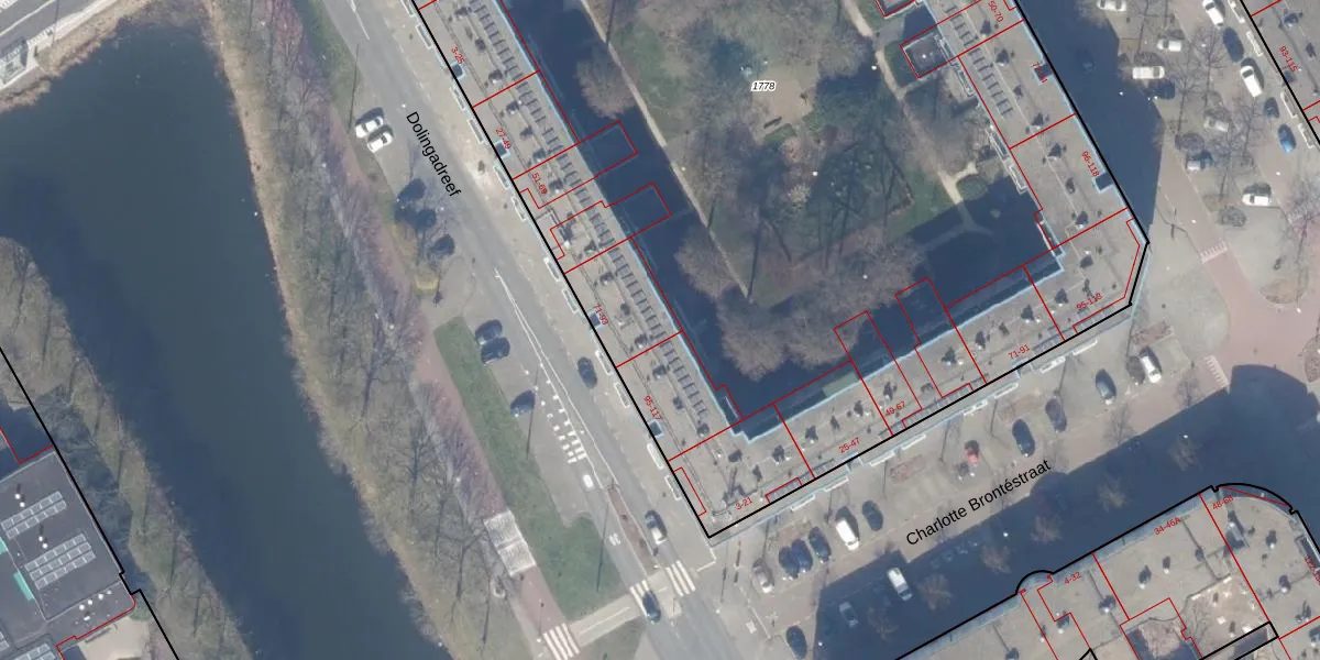 Het perceel waarop Dolingadreef 71 staat heeft een oppervlakte van 8370 m². Dit is een zeer groot perceel. De perceeloppervlakte wordt geregistreerd door het Kadaster. Gedetailleerde informatie over de maten van dit perceel kunt u vinden in het rapport Kadastrale kaart met maatvoering van Dolingadreef 71.