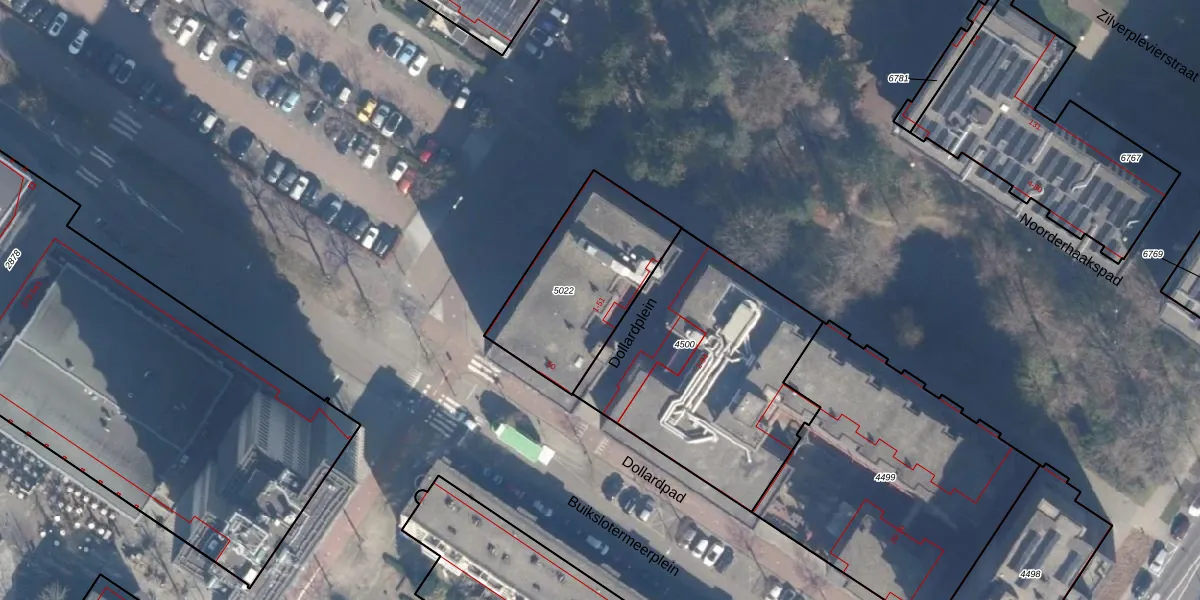 Het perceel waarop Dollardplein 7 staat heeft een oppervlakte van 585 m². Dit is een groot perceel. De perceeloppervlakte wordt geregistreerd door het Kadaster. Gedetailleerde informatie over de maten van dit perceel kunt u vinden in het rapport Kadastrale kaart met maatvoering van Dollardplein 7.