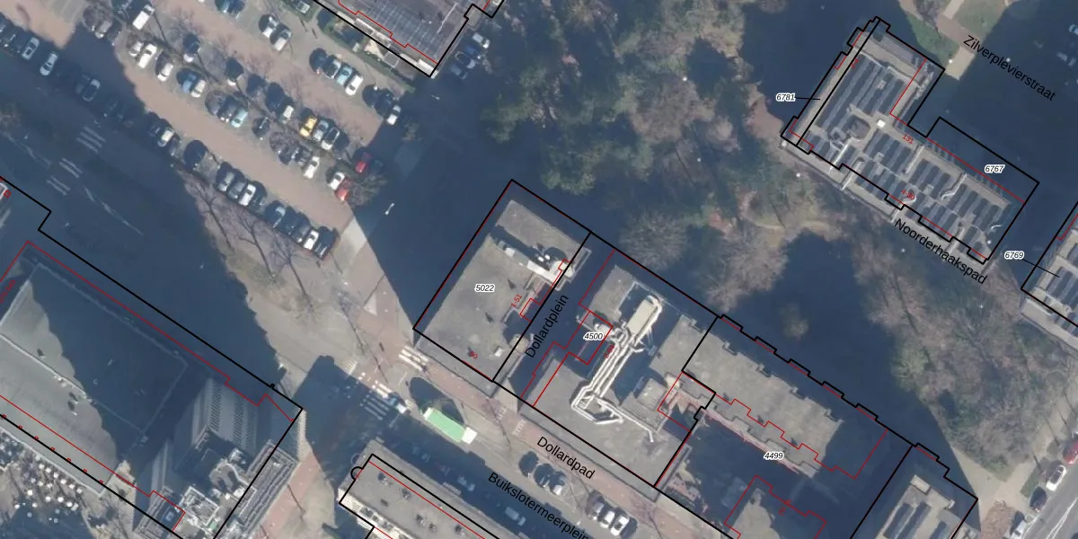 Het perceel waarop Dollardplein 9 staat heeft een oppervlakte van 585 m². Dit is een groot perceel. De perceeloppervlakte wordt geregistreerd door het Kadaster. Gedetailleerde informatie over de maten van dit perceel kunt u vinden in het rapport Kadastrale kaart met maatvoering van Dollardplein 9.