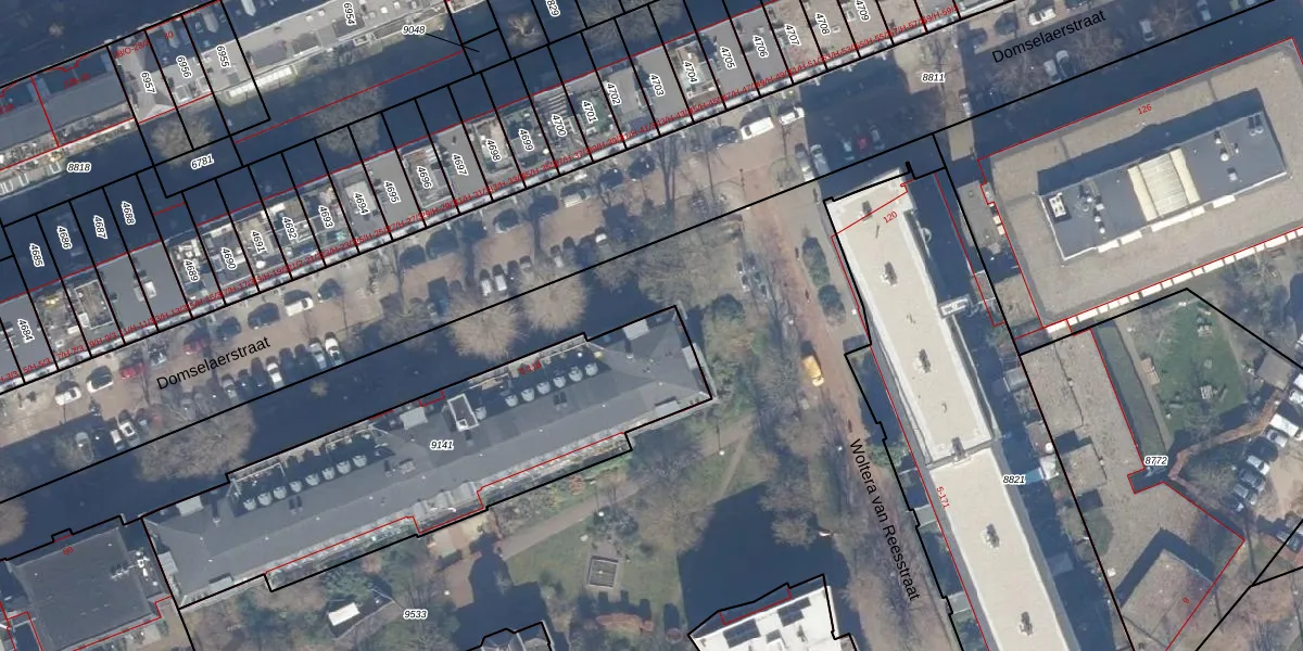 Het perceel waarop Domselaerstraat 108 staat heeft een oppervlakte van 1608 m². Dit is een zeer groot perceel. De perceeloppervlakte wordt geregistreerd door het Kadaster. Gedetailleerde informatie over de maten van dit perceel kunt u vinden in het rapport Kadastrale kaart met maatvoering van Domselaerstraat 108.