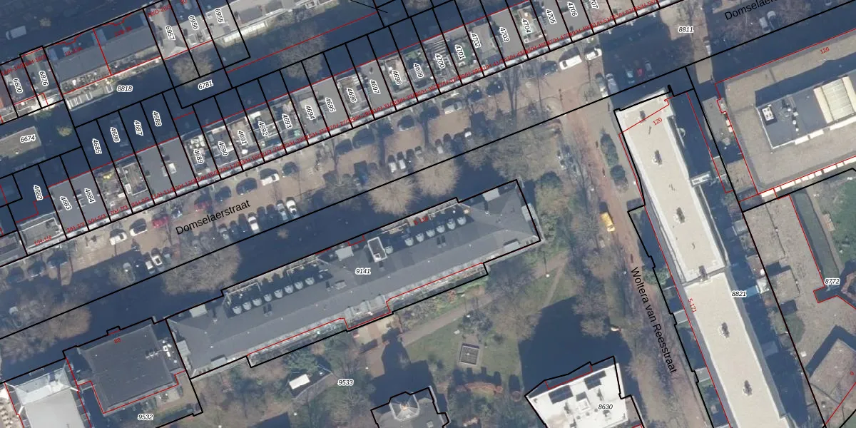 Het perceel waarop Domselaerstraat 72 staat heeft een oppervlakte van 1608 m². Dit is een zeer groot perceel. De perceeloppervlakte wordt geregistreerd door het Kadaster. Gedetailleerde informatie over de maten van dit perceel kunt u vinden in het rapport Kadastrale kaart met maatvoering van Domselaerstraat 72.