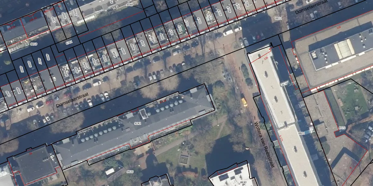 Domselaerstraat 90 is gelegen op kadastraal perceel ASD15S9141. Deze kadastrale aanduiding is uniek en wordt gebruikt door het Kadaster om eigendomsrechten en andere zakelijke rechten vast te leggen. Het perceel maakt onderdeel uit van de kadastrale gemeente Amsterdam.