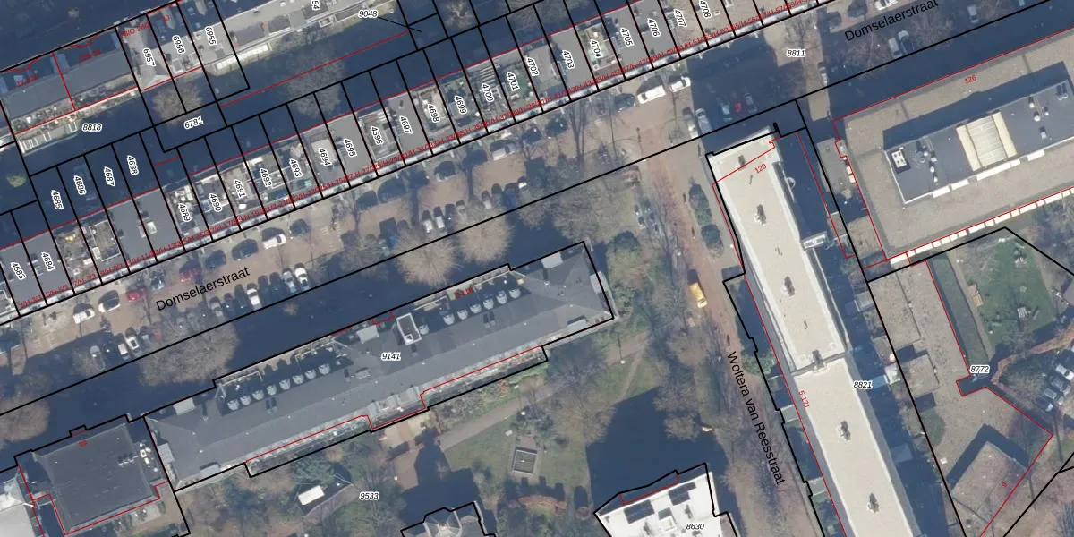 Het perceel waarop Domselaerstraat 92 staat heeft een oppervlakte van 1608 m². Dit is een zeer groot perceel. De perceeloppervlakte wordt geregistreerd door het Kadaster. Gedetailleerde informatie over de maten van dit perceel kunt u vinden in het rapport Kadastrale kaart met maatvoering van Domselaerstraat 92.